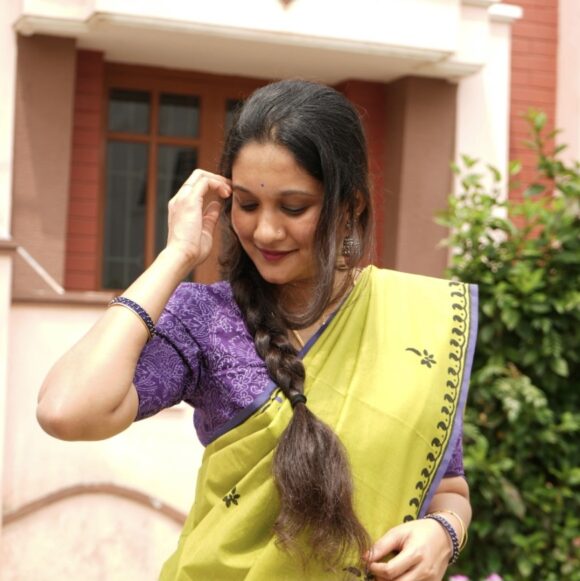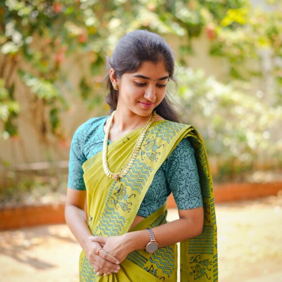 Experience the elegance of the finest hues and prints of the most loved Mudhra collection of hand block printed sarees in blended south cotton.