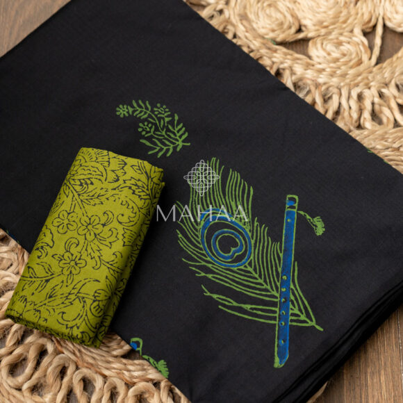 Blended South Cotton Printed sarees with contrasting blouse