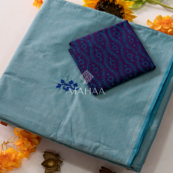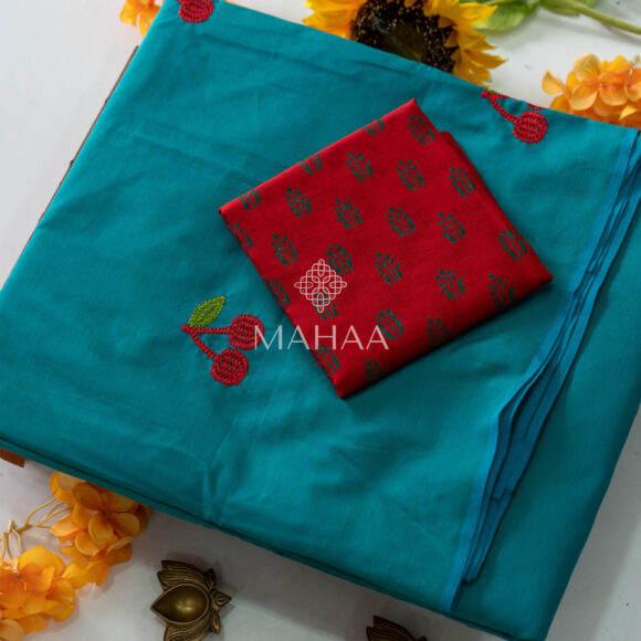 Blended South Cotton Embroidery saree with contrasting blouse