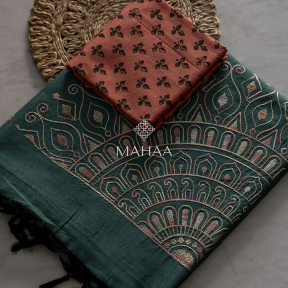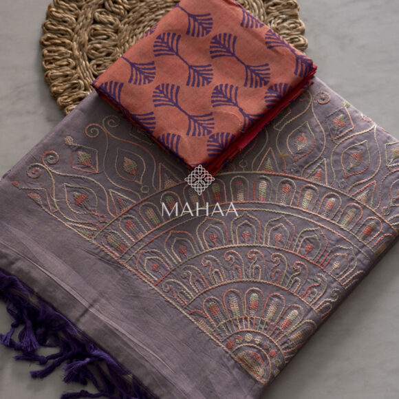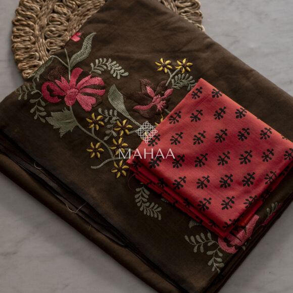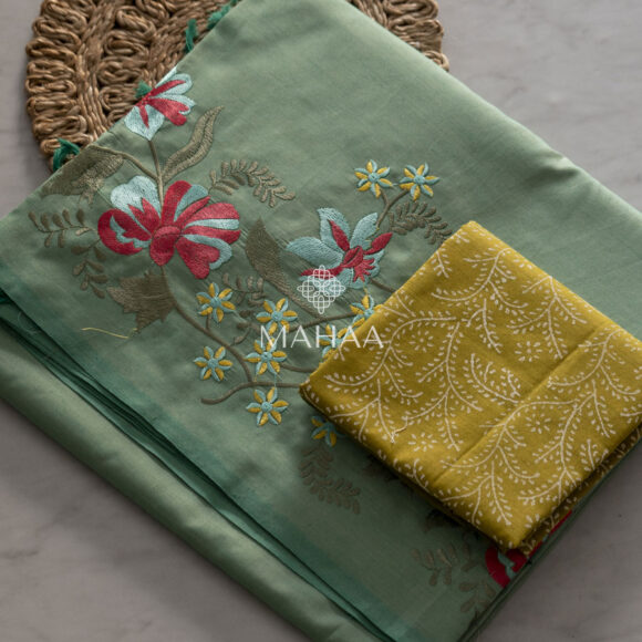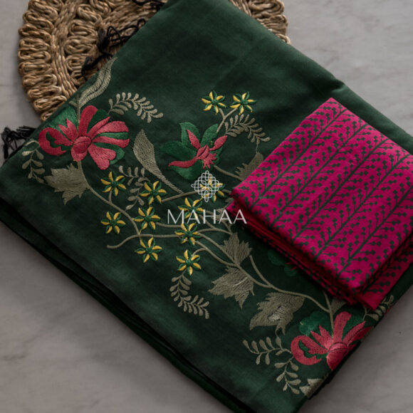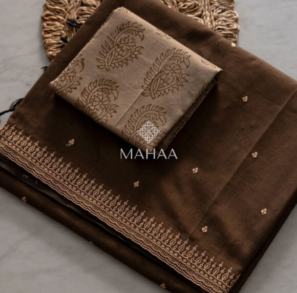 Exclusive embroidery sarees with contrast blouse