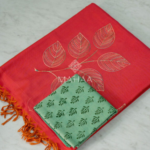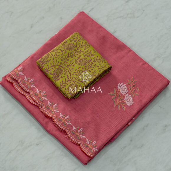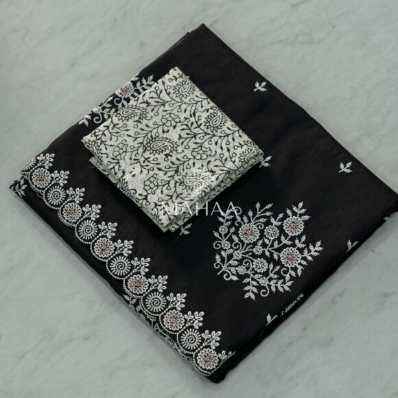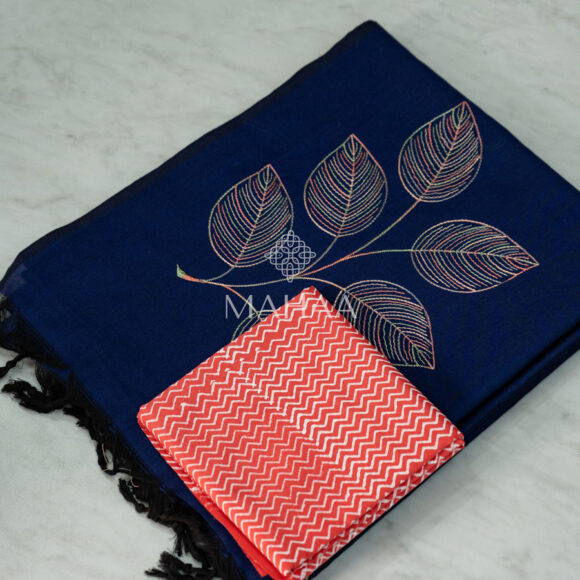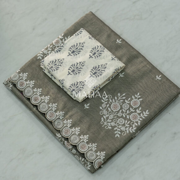 Exclusive embroidery sarees with contrast blouse