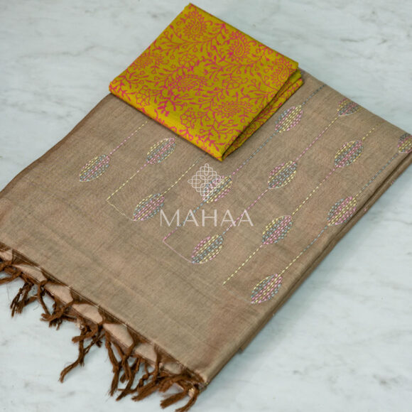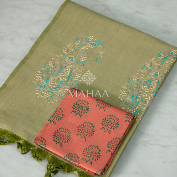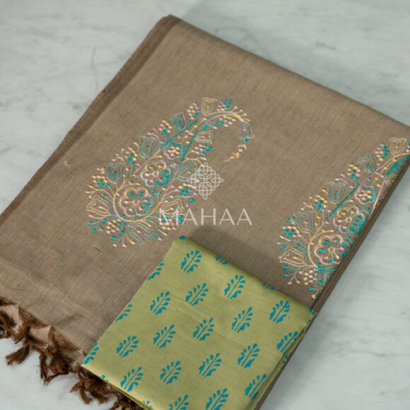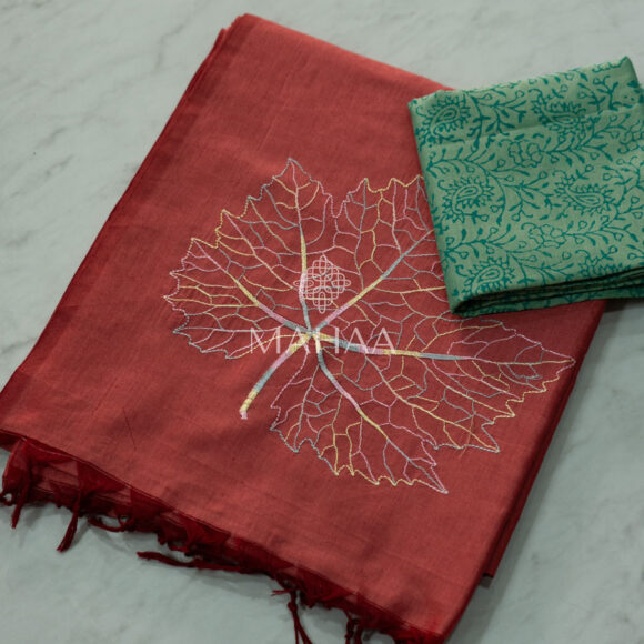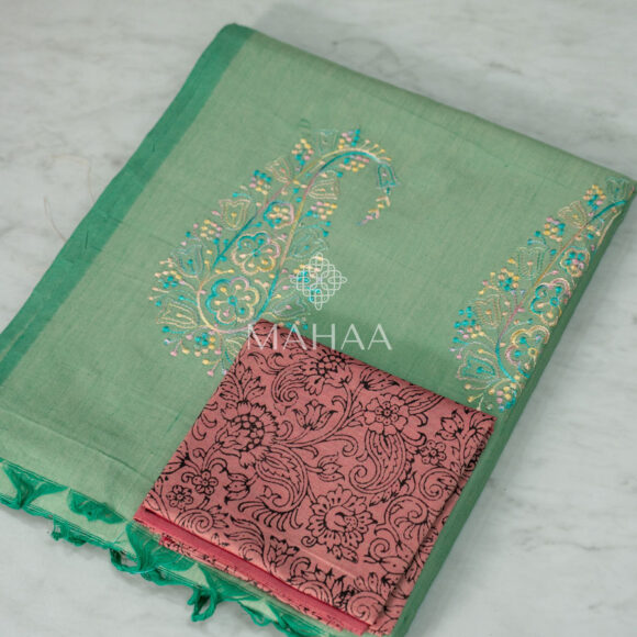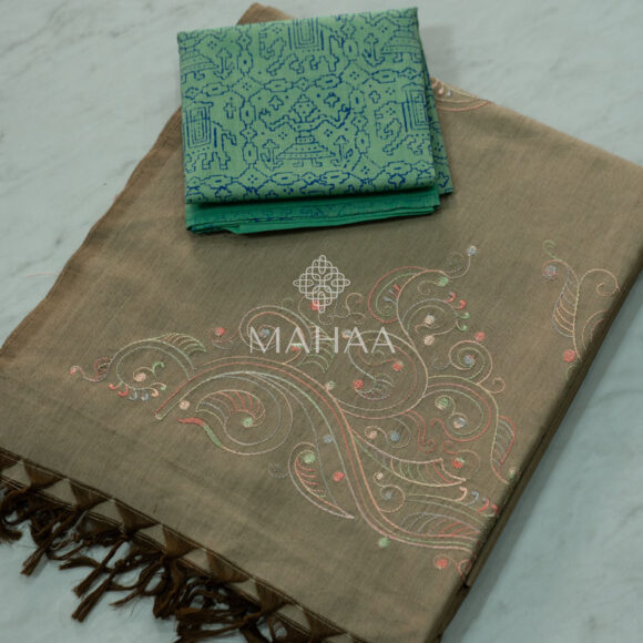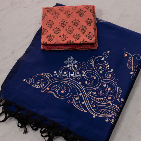 Exclusive embroidery sarees with contrast blouse