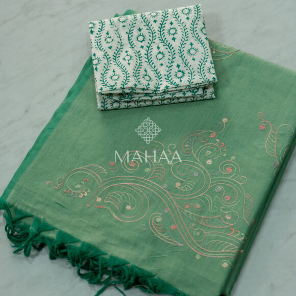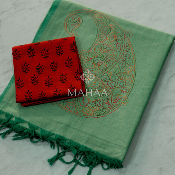 Blended South Cotton Printed sarees with contrasting blouse