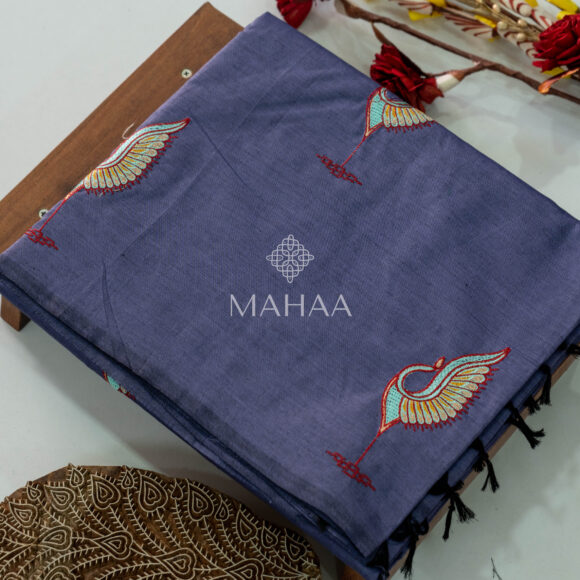 Exclusive embroidery sarees with contrast blouse