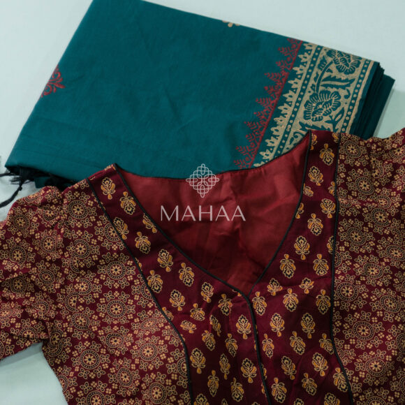 Saree length 6.25 metres with running blouse and readymade blouse. Height 47 inches Easy to wash and maintain. Starch not required. Print won’t fade. You can machine wash as well after two times by hand. Blouse pattern ~ High neck, princess cut and elbow sleeves. With lining. Delivery time :