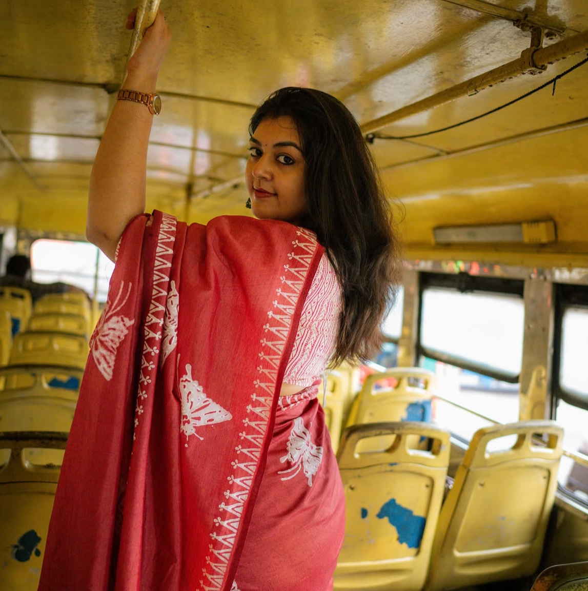 Blended South Cotton printed sarees with contrasting blouse