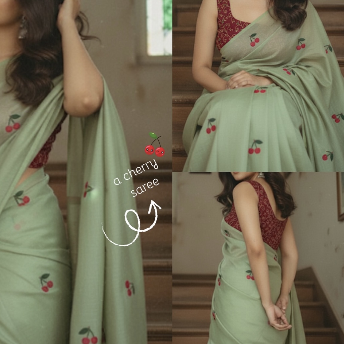 Blended South Cotton Printed sarees with contrasting blouse