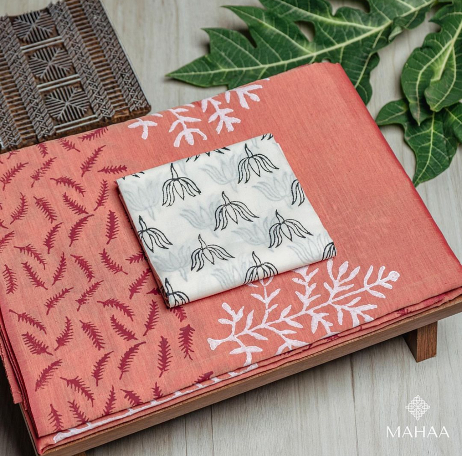 Saree length 6.25 metres with running blouse and 1 metre contrast blouse.