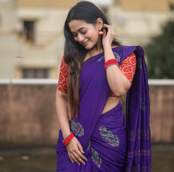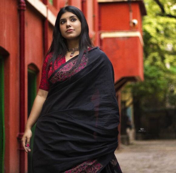 Saree length 6.25 metres with running blouse and 1 metre contrast blouse.