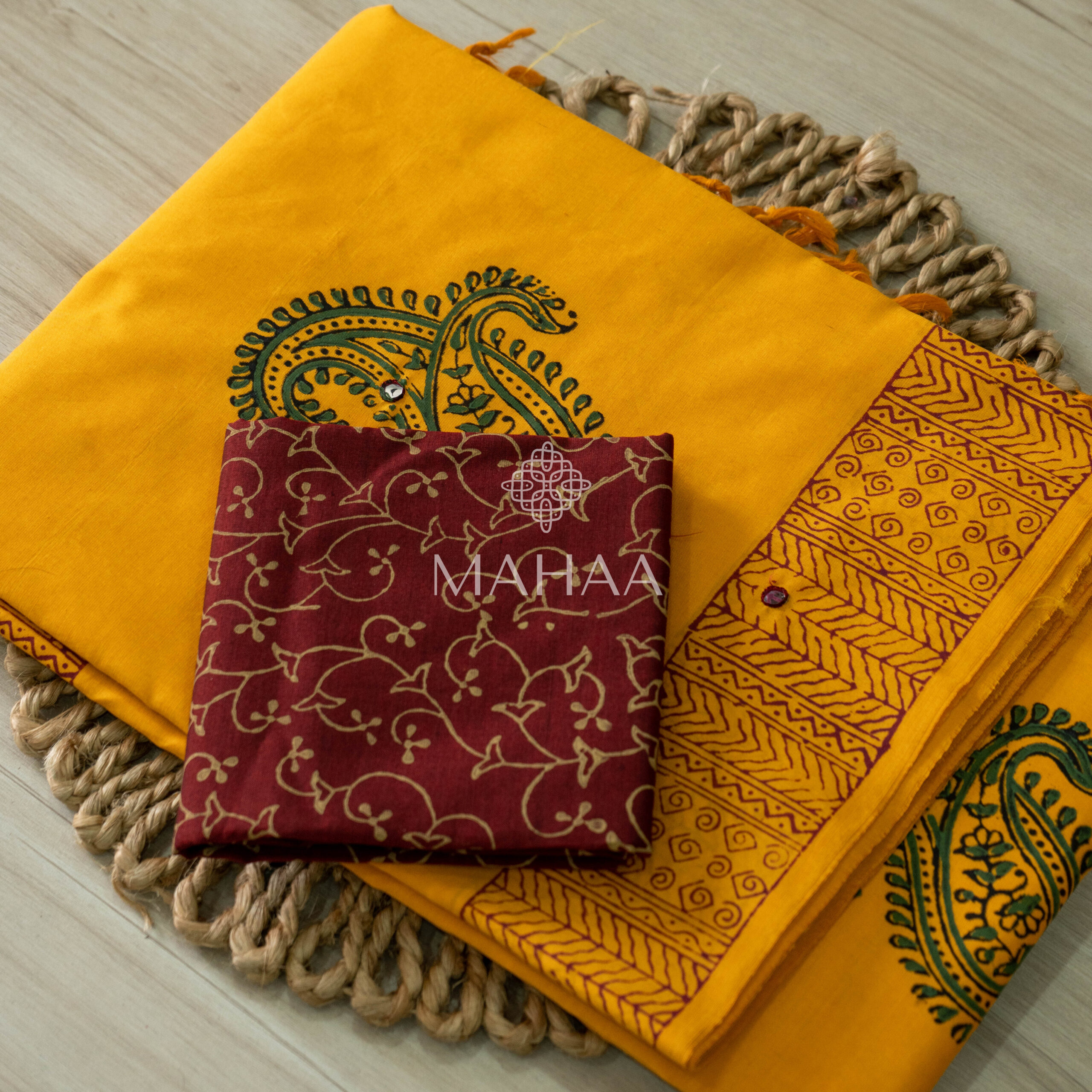 Blended South Cotton printed sarees with mirror work