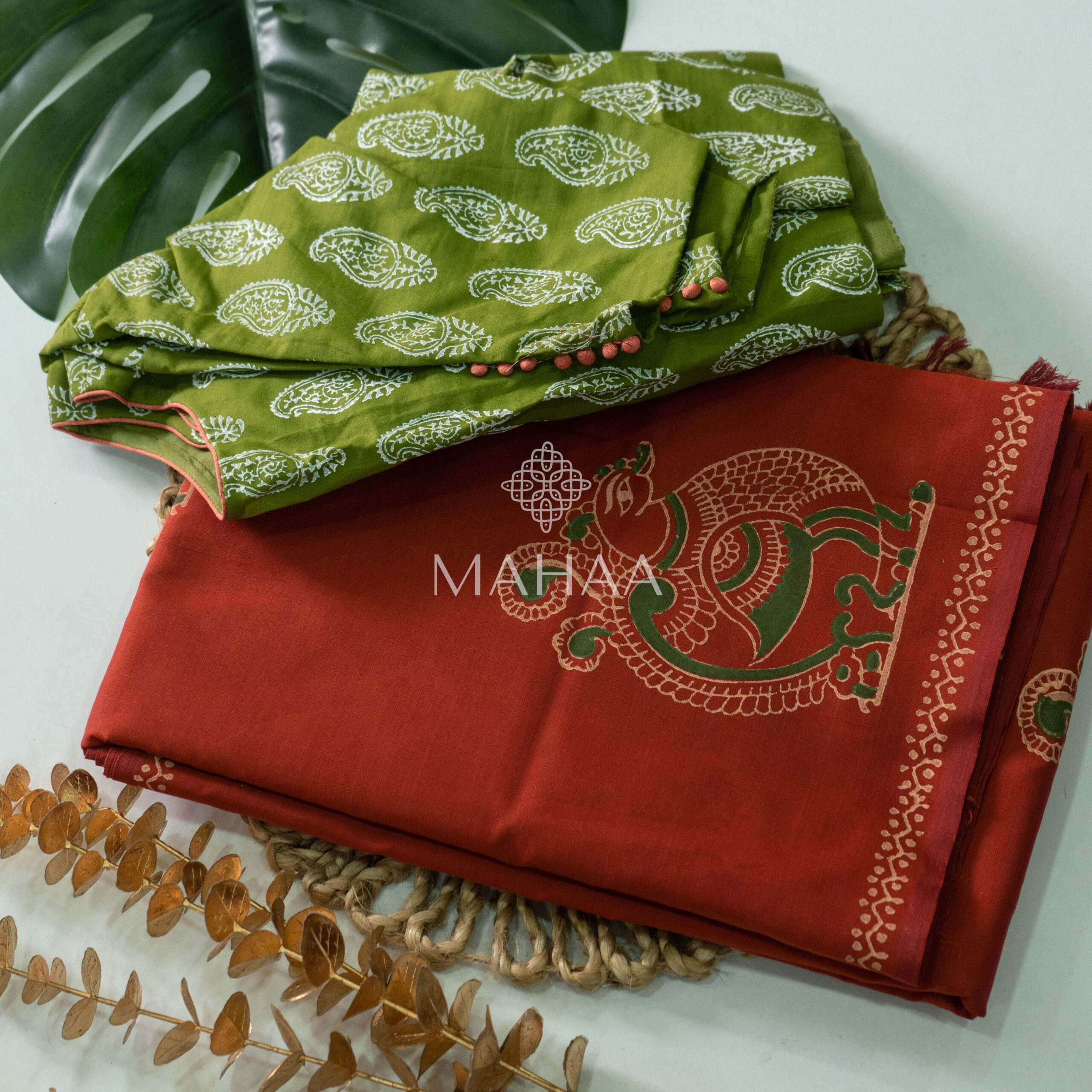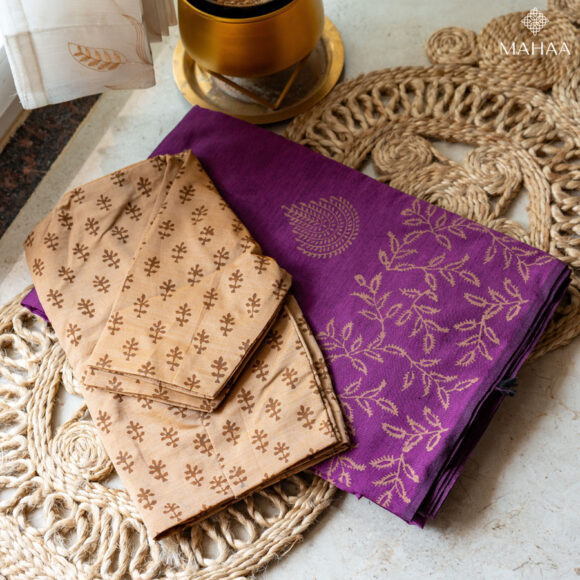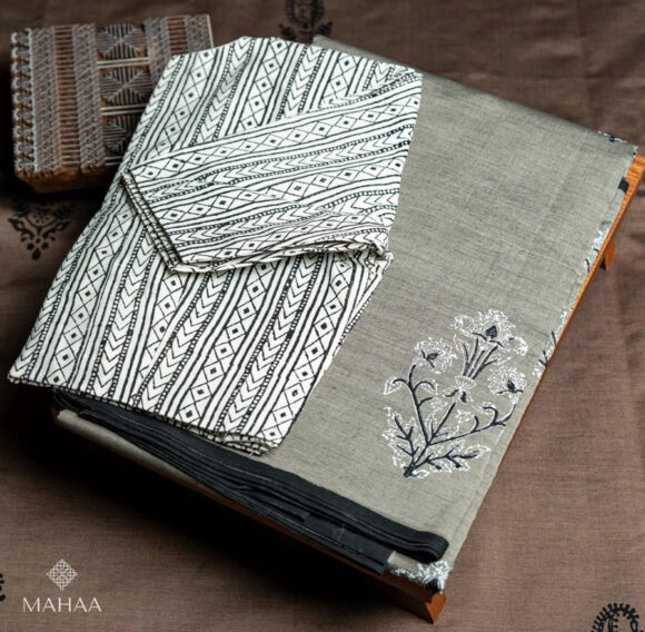 Blended South Cotton Printed sarees with contrasting blouse