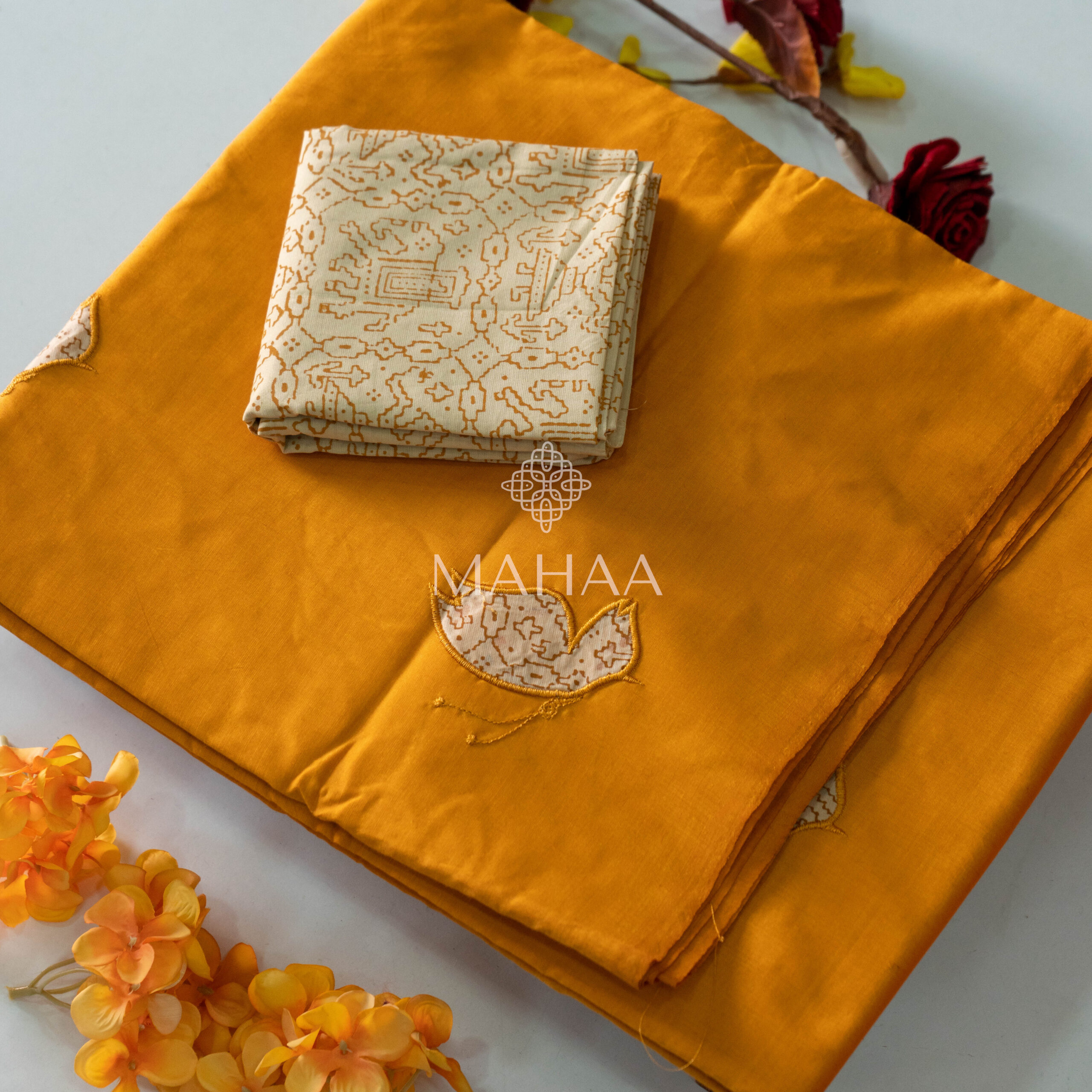 Blended South Cotton with applique work saree with contrasting blouse