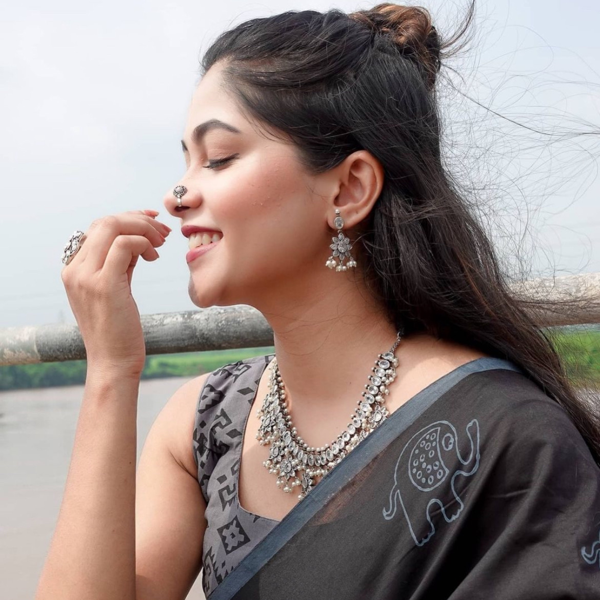 Saree length 6.25 metres with running blouse and 1 metre contrast blouse.