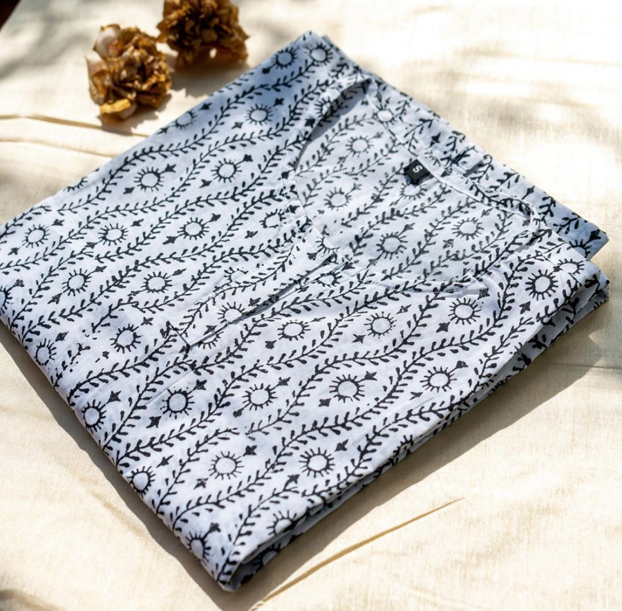 Long kurti with round neck , 3/4 sleeve length and without lining.