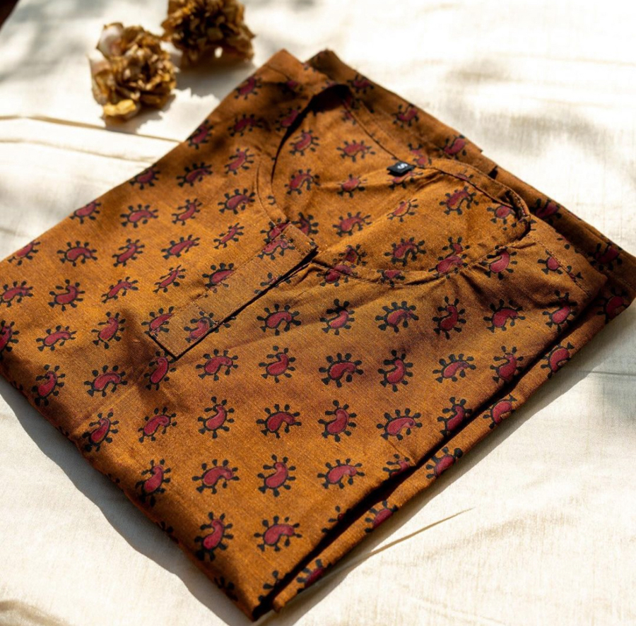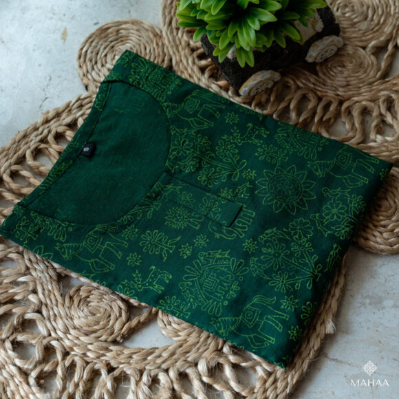 Long kurti with round neck , 3/4 sleeve length and without lining.