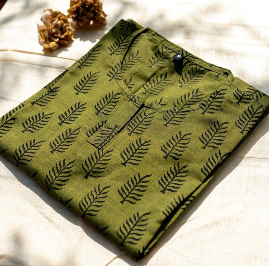 Long kurti with round neck , 3/4 sleeve length and without lining.