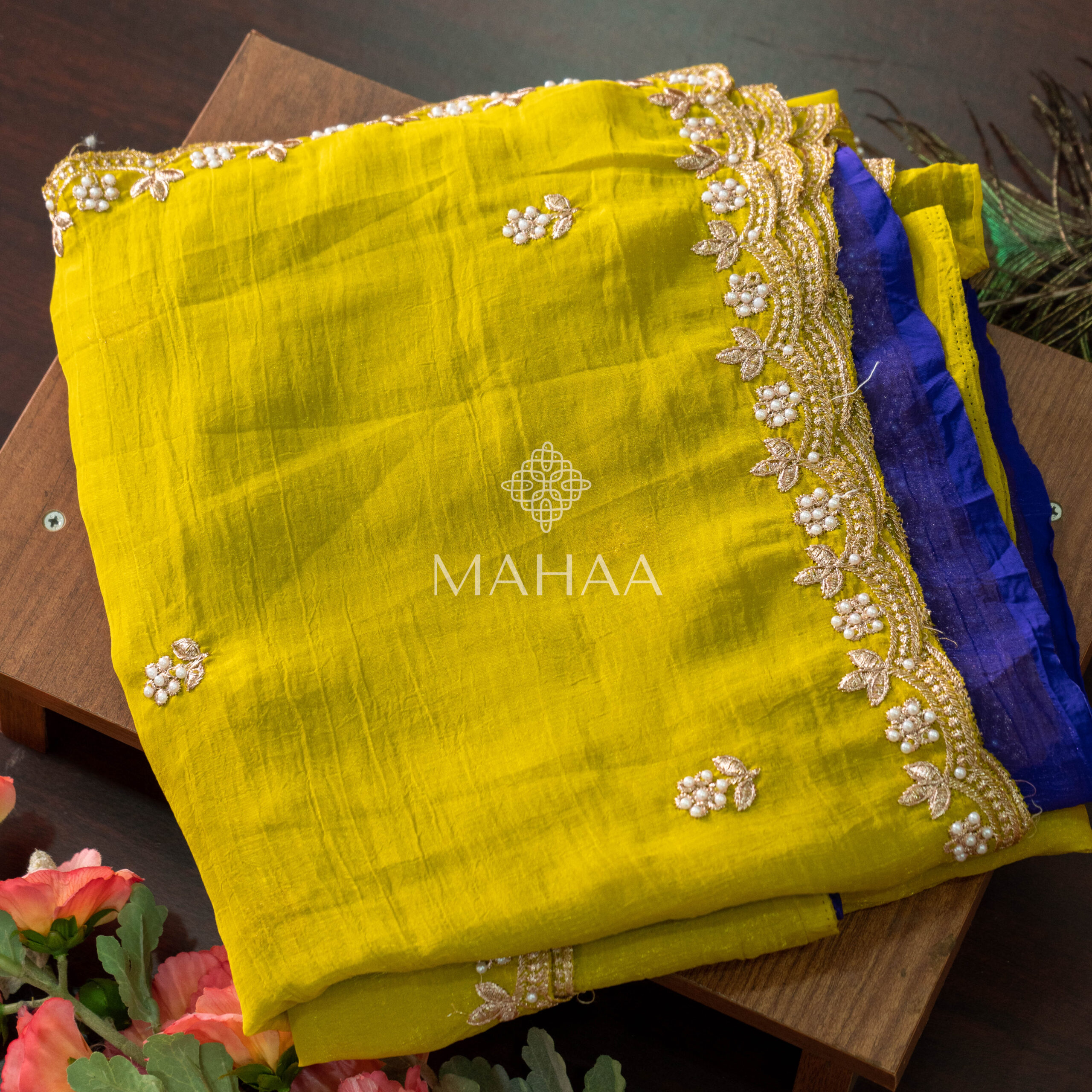 Tussar georgette with floral printed borders