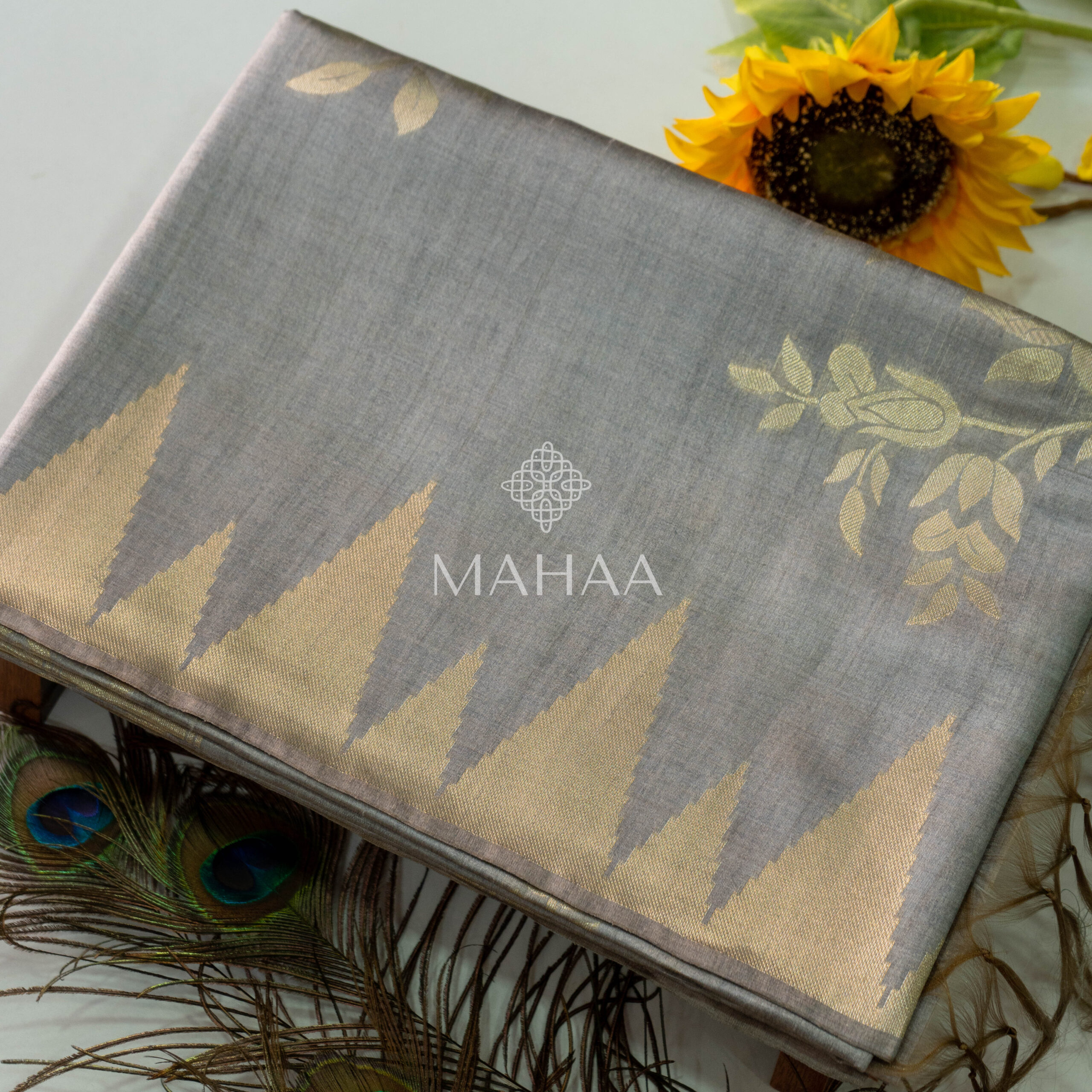 Tussar georgette with floral printed borders