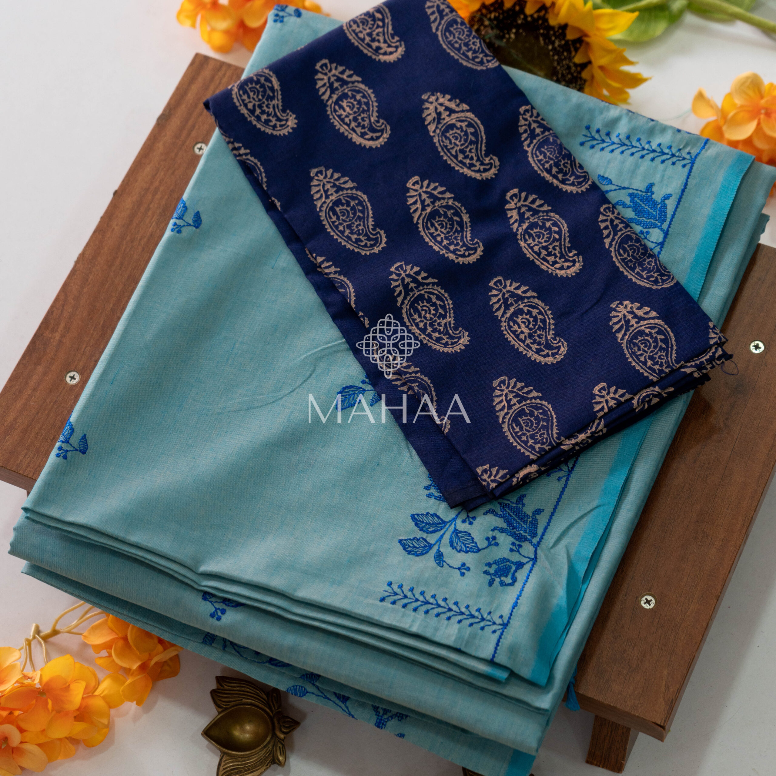 Exclusive embroidery sarees with contrast blouse