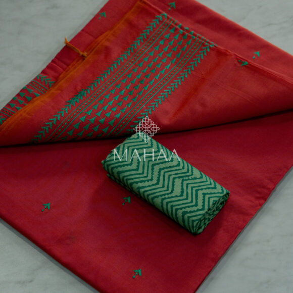 Blended South Cotton printed sarees with mirror work