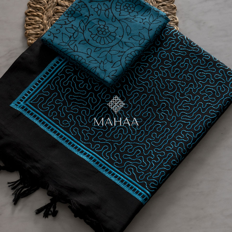 Exclusive embroidery sarees with contrast blouse