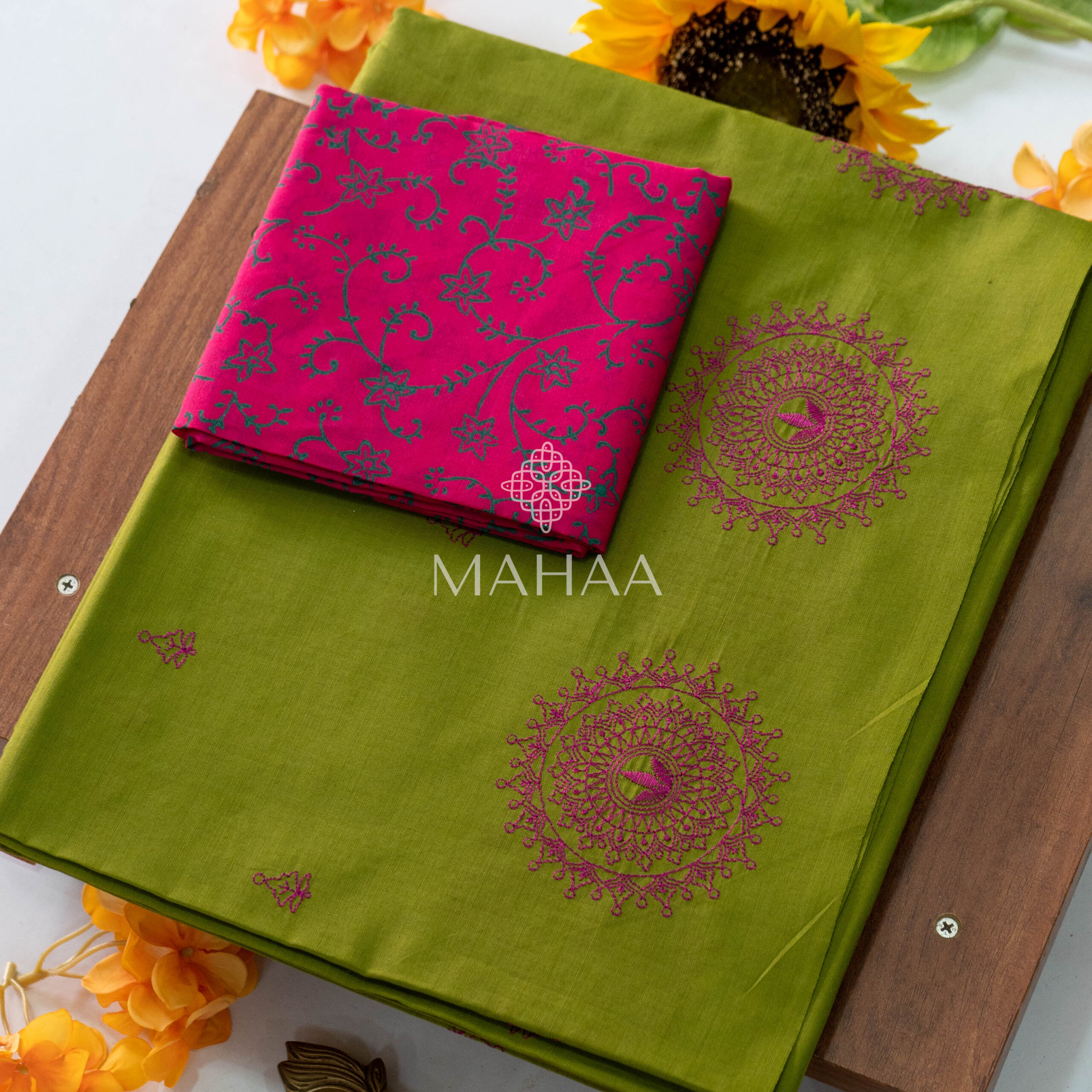 Exclusive embroidery sarees with contrast blouse