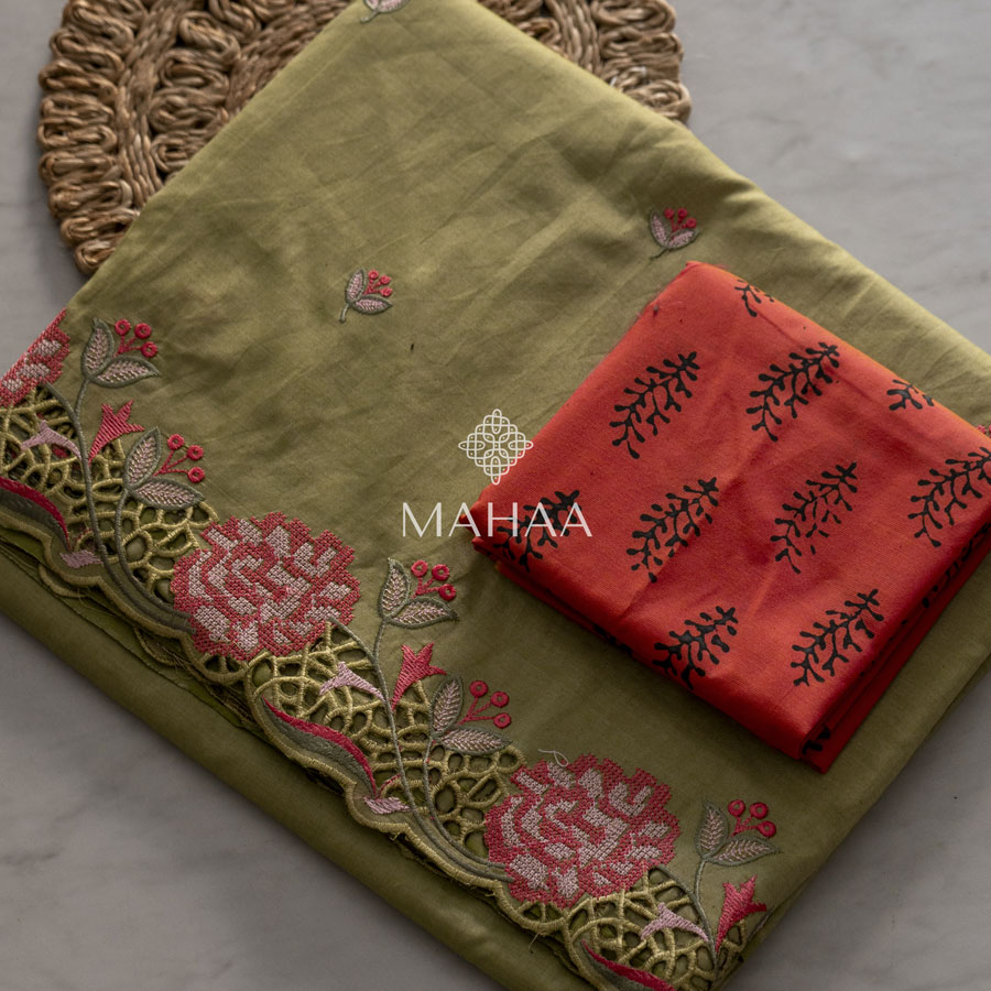 Exclusive embroidery sarees with contrast blouse