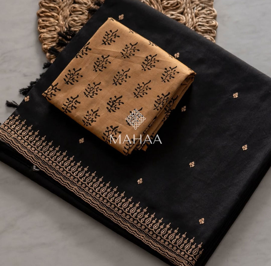 Exclusive embroidery sarees with contrast blouse