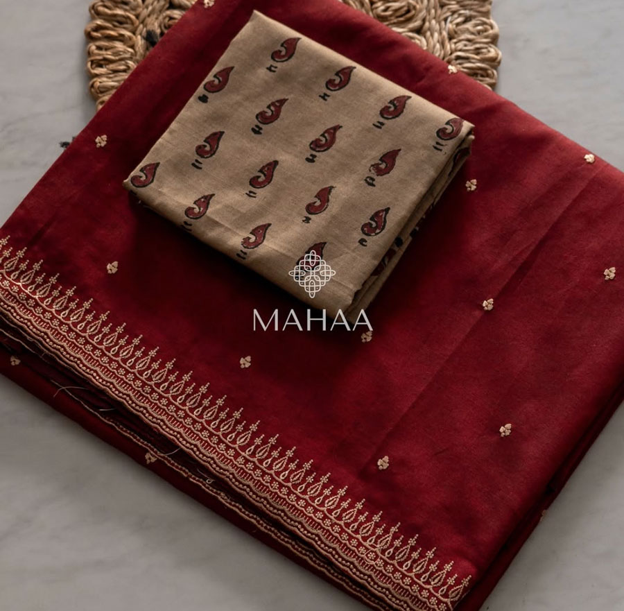 Exclusive embroidery sarees with contrast blouse