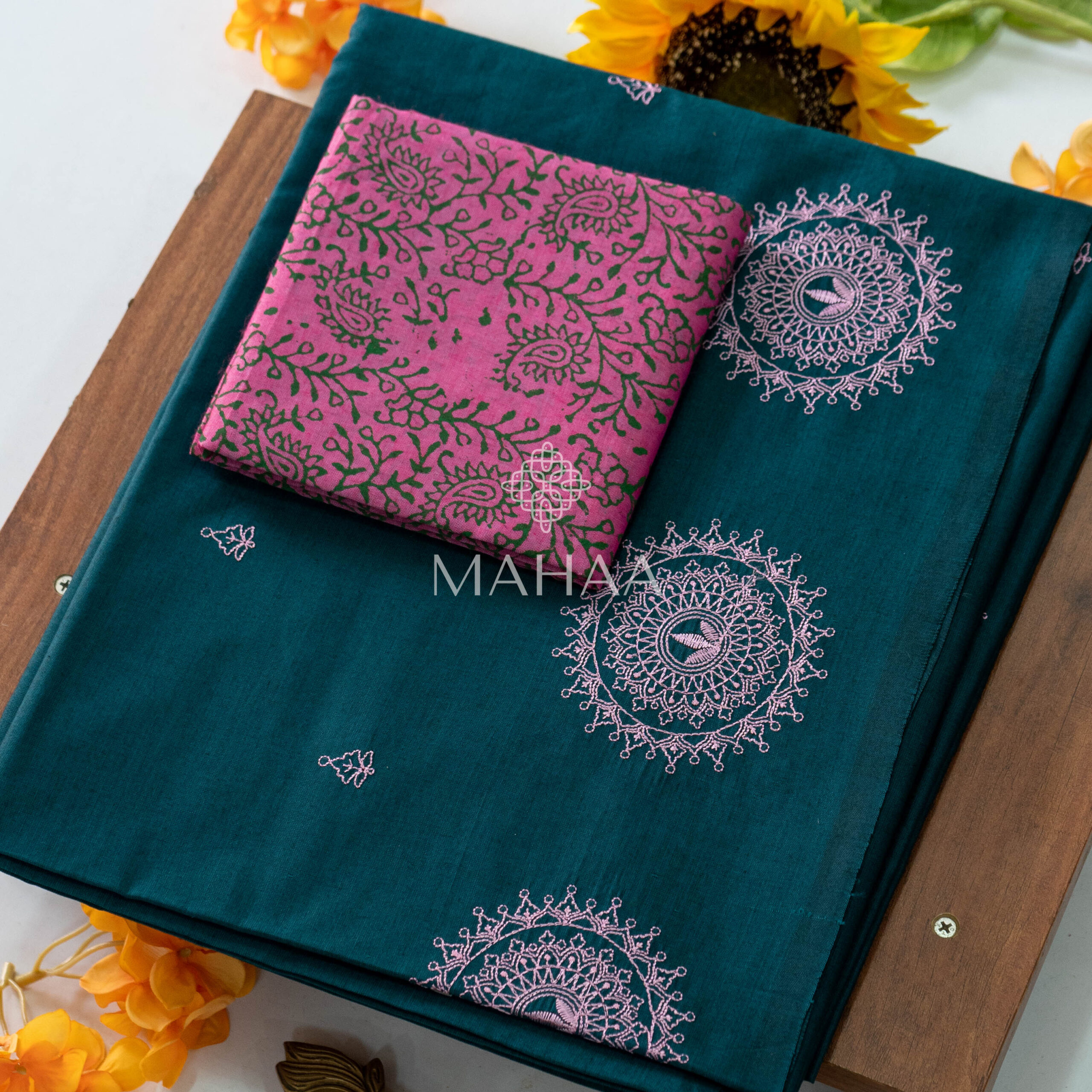 Exclusive embroidery sarees with contrast blouse