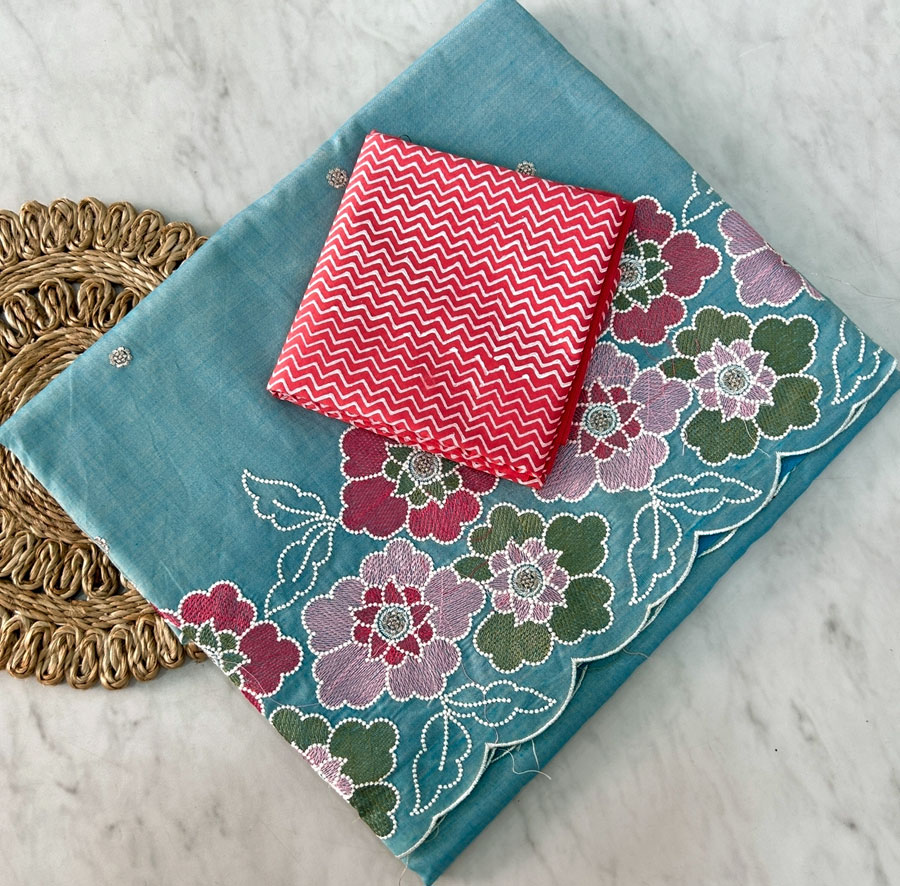 Exclusive embroidery sarees with contrast blouse