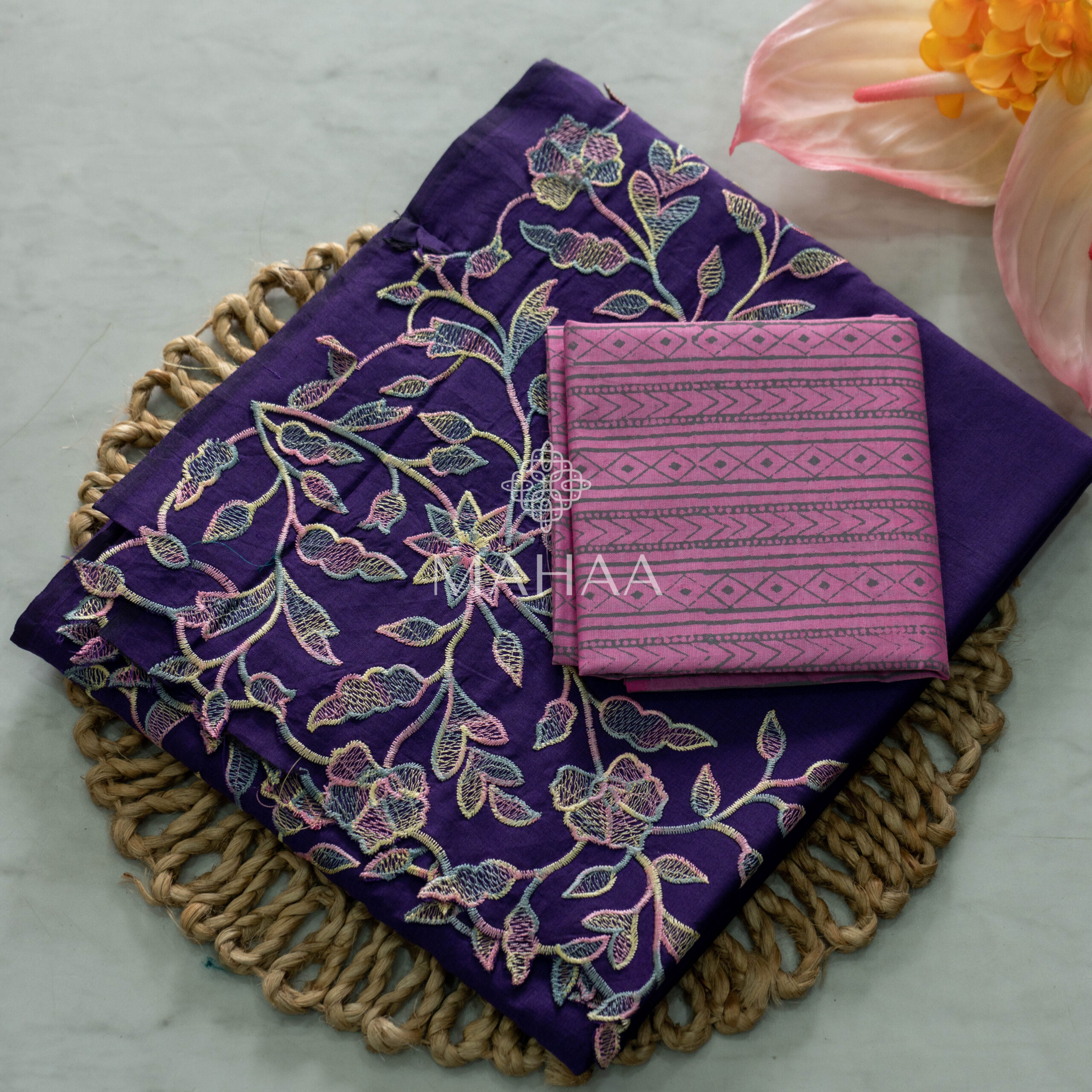 Exclusive embroidery sarees with contrast blouse