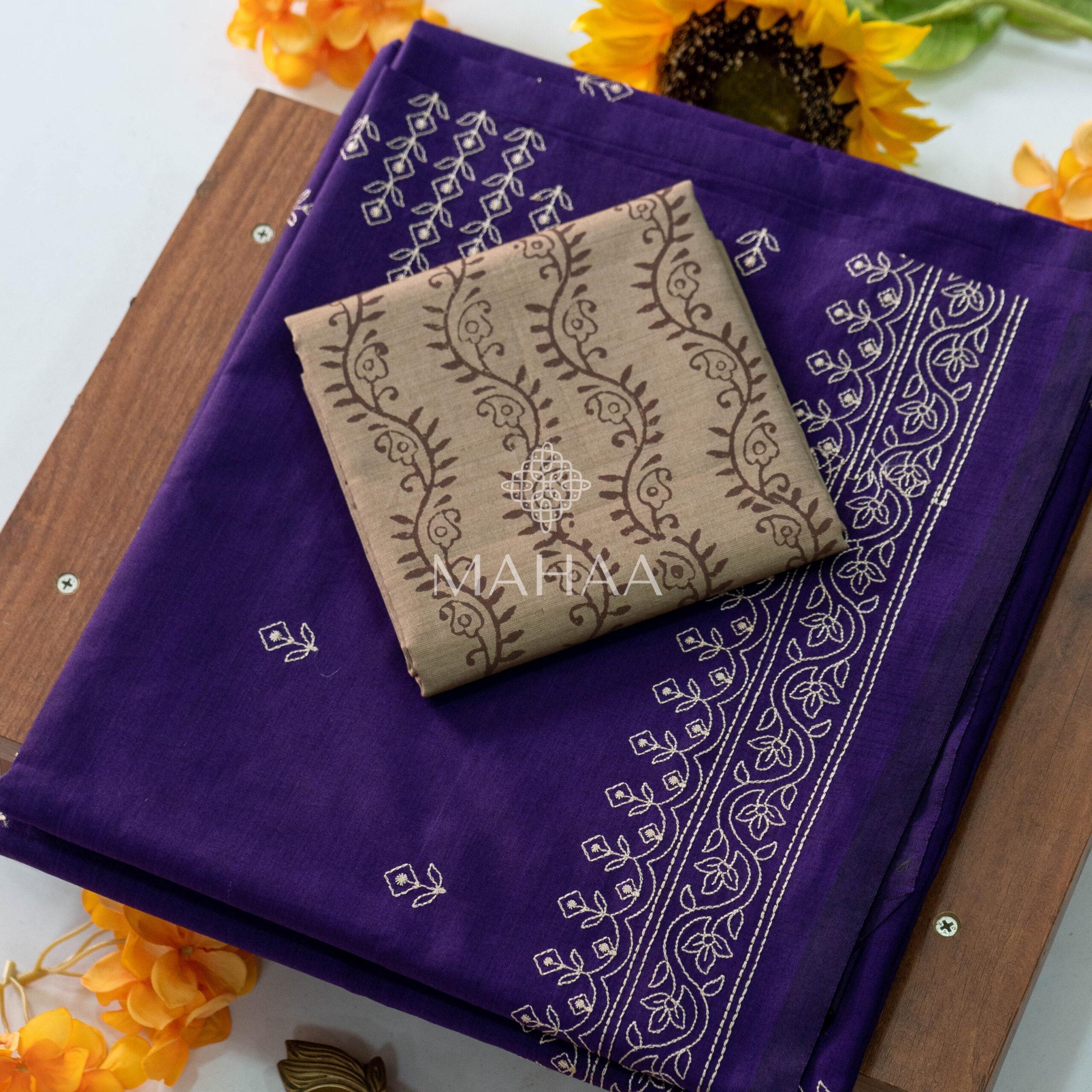 Exclusive embroidery sarees with contrast blouse