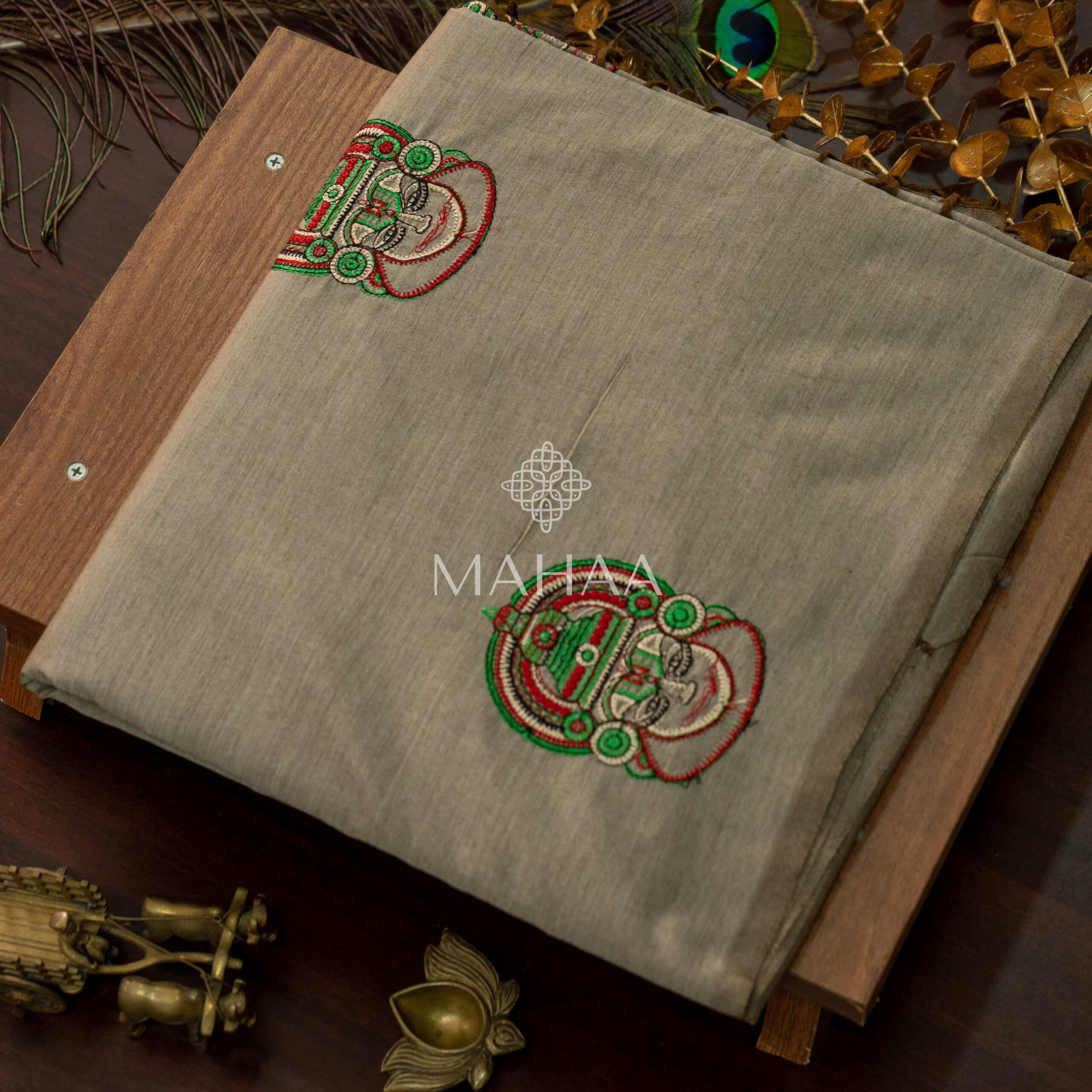 Exclusive embroidery sarees with contrast blouse