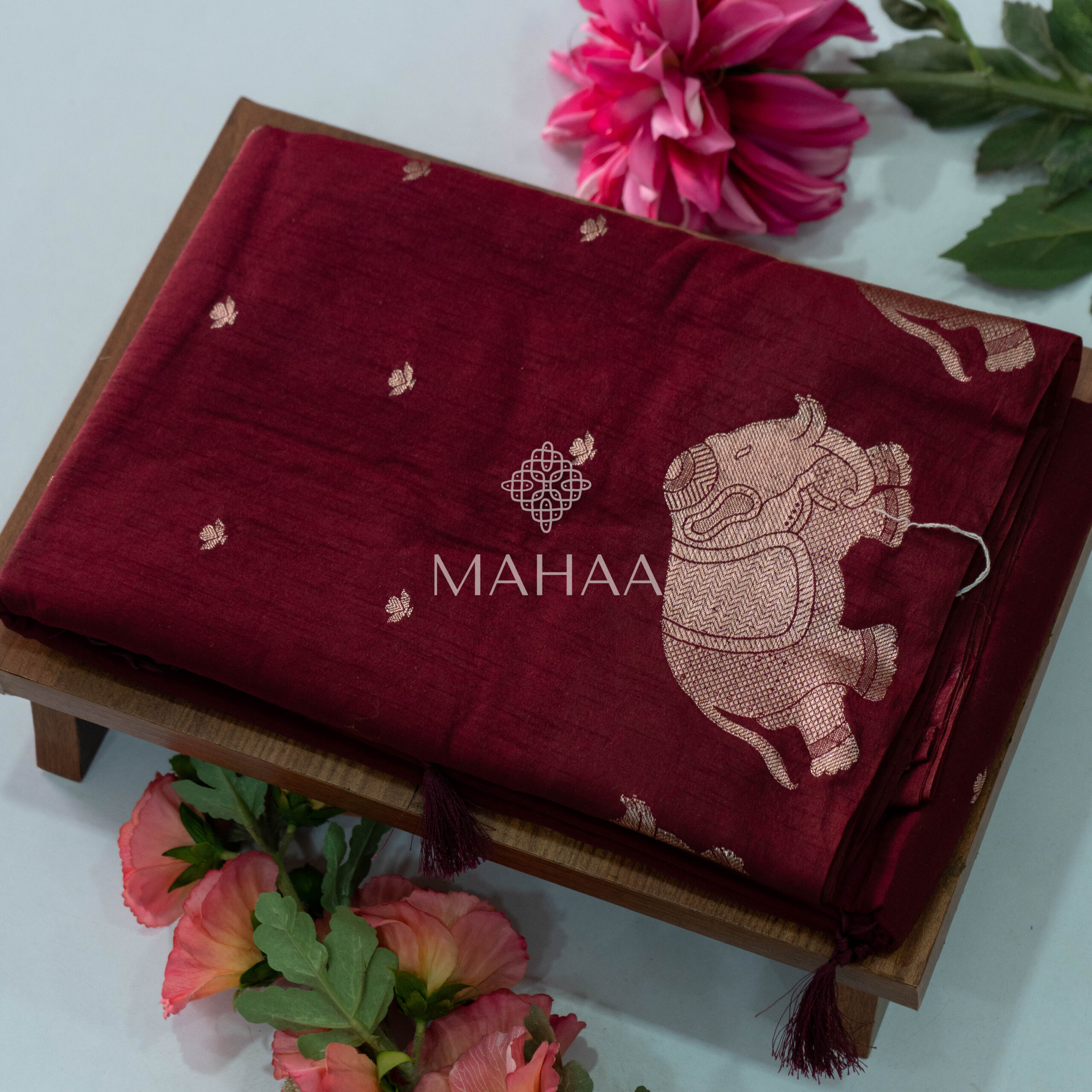 Exclusive semi tussar sarees with elephant border