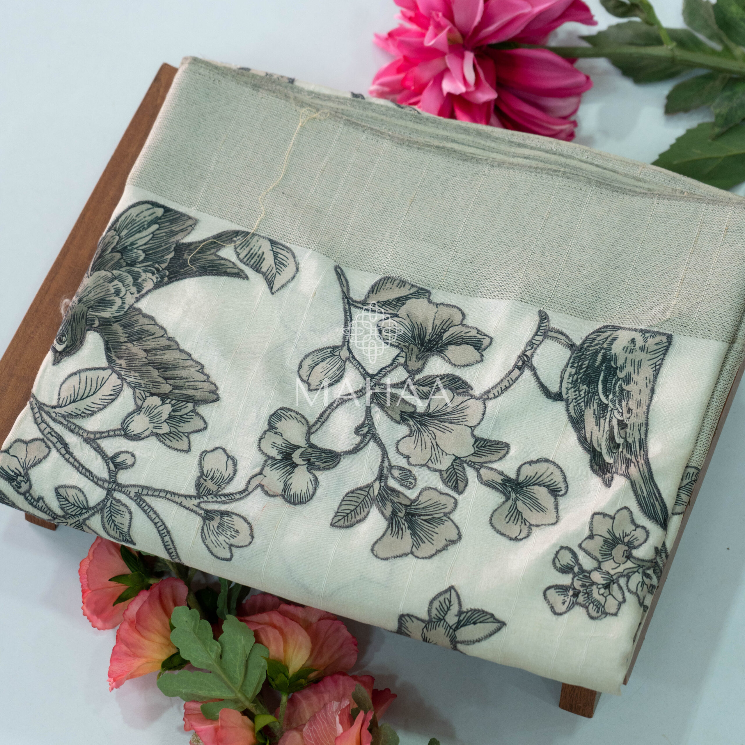 Tussar georgette with floral printed borders