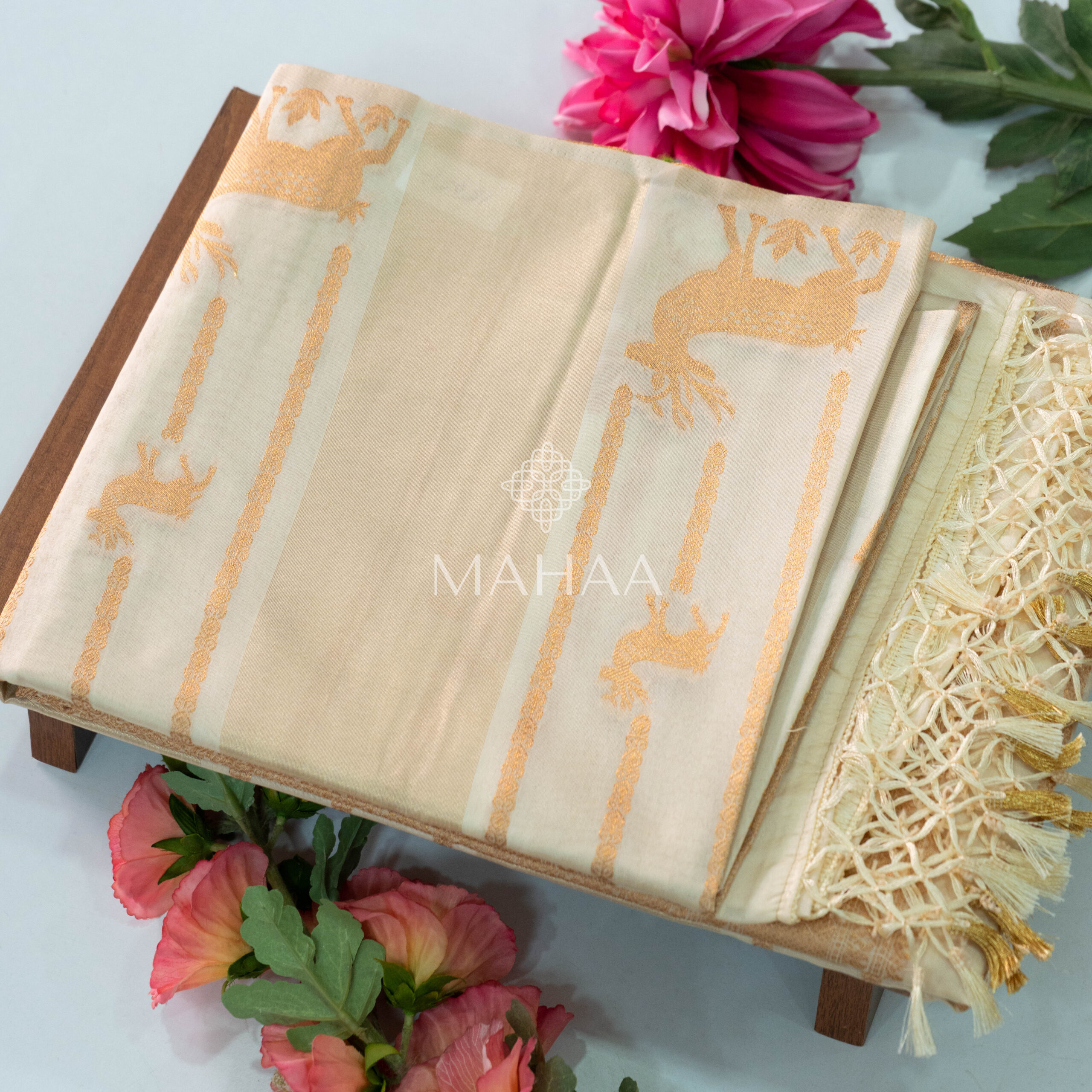 Tussar georgette with floral printed borders
