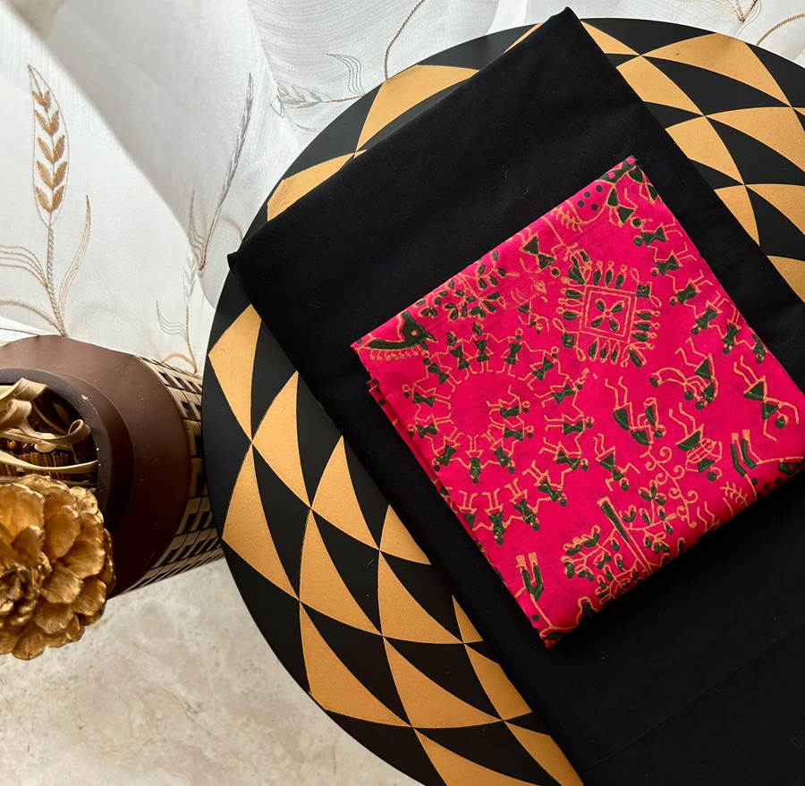 Saree length 6.25 metres with running blouse and 1 metre contrast blouse.