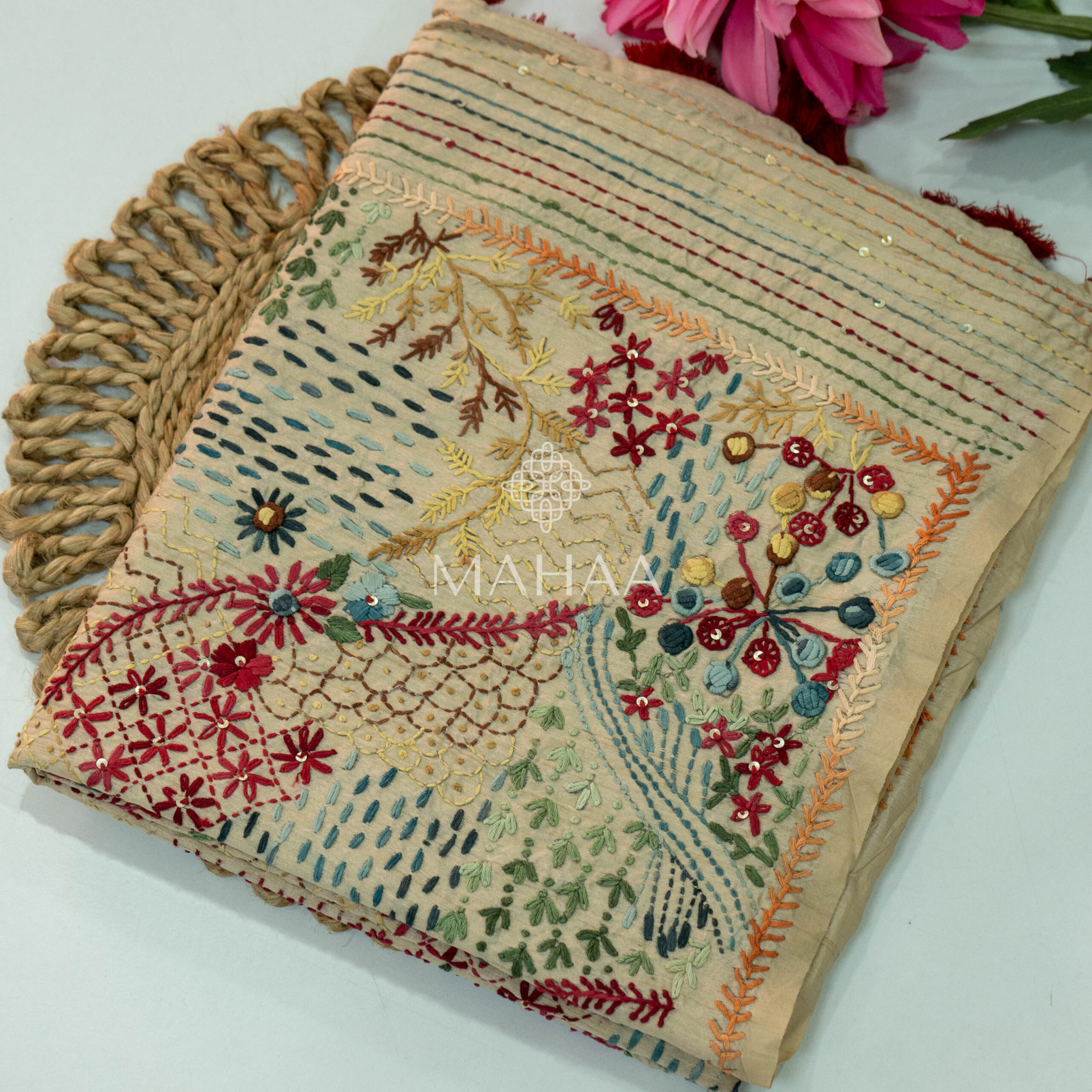 Semi Tussar with thread embroidery sarees