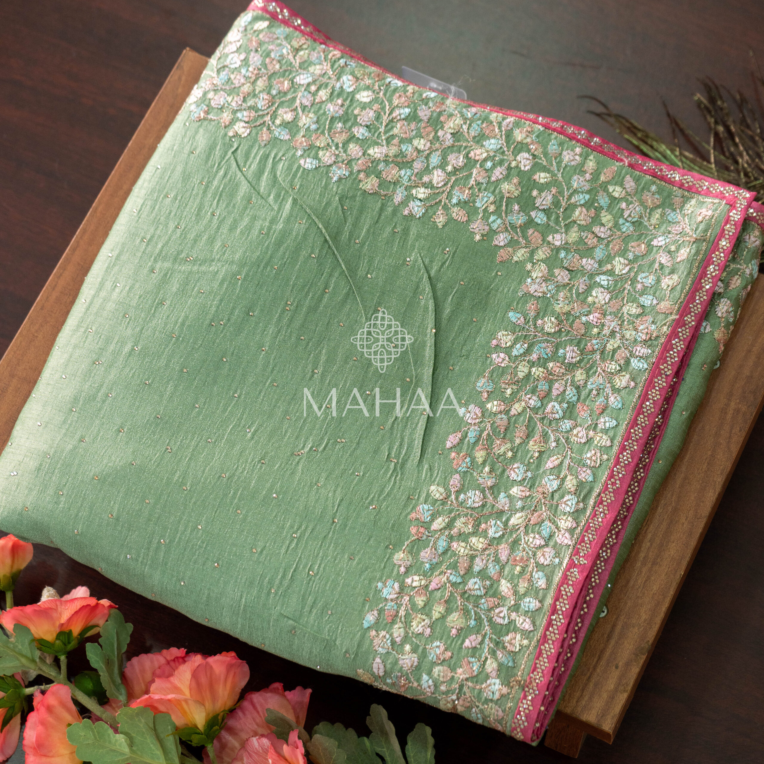 Tussar georgette with floral printed borders