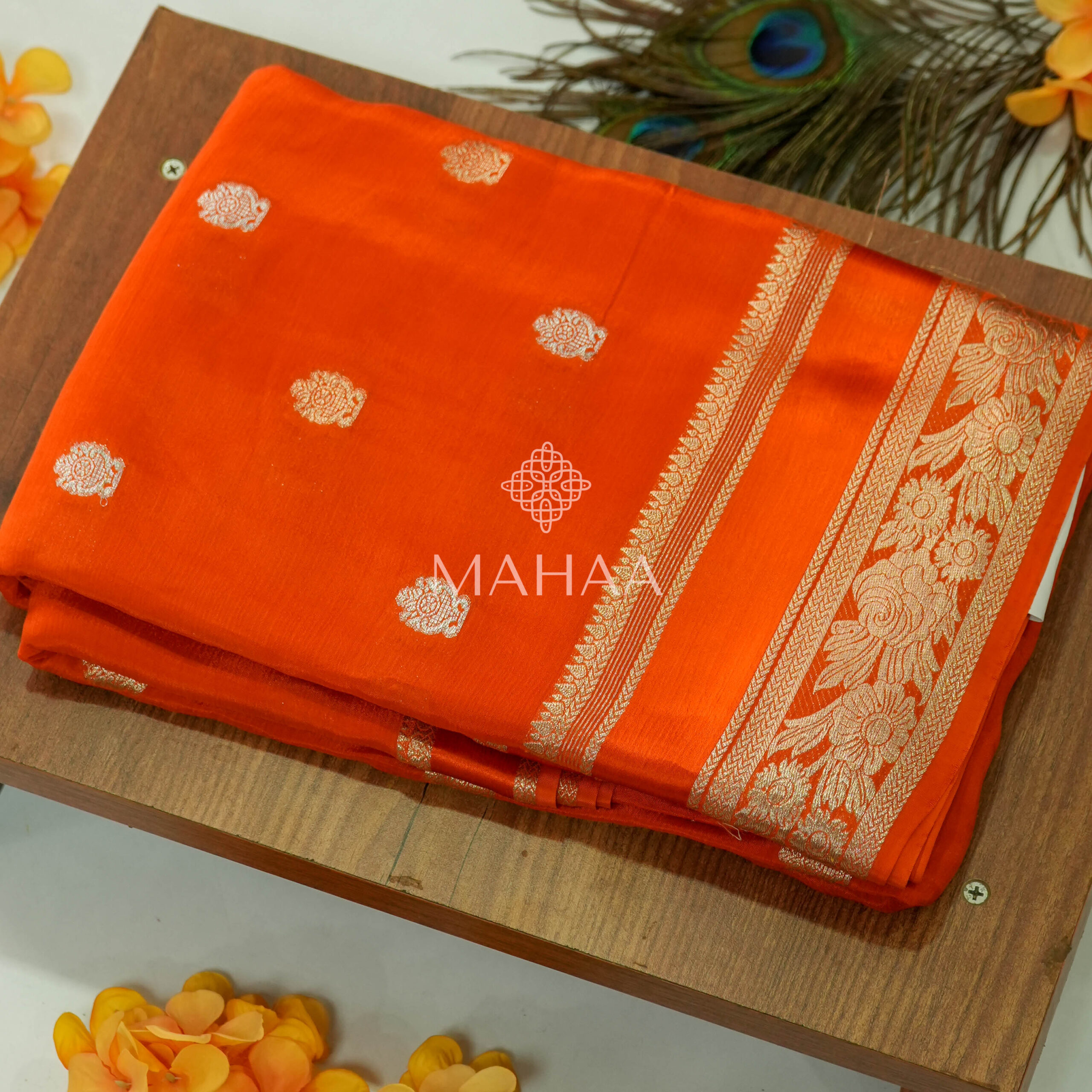 Tussar georgette with floral printed borders