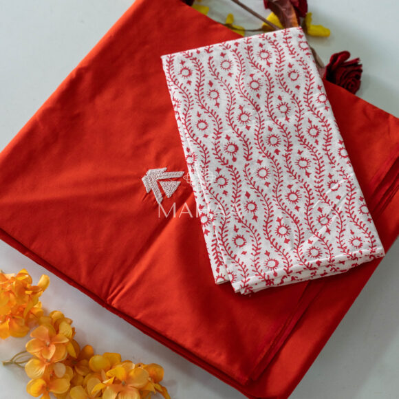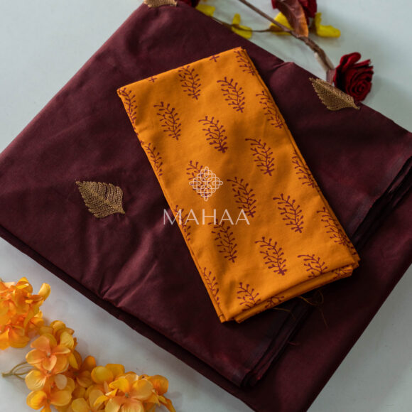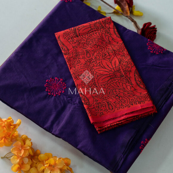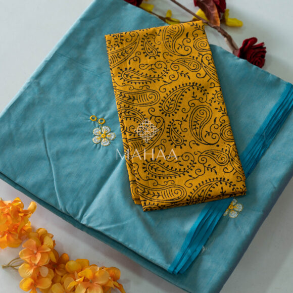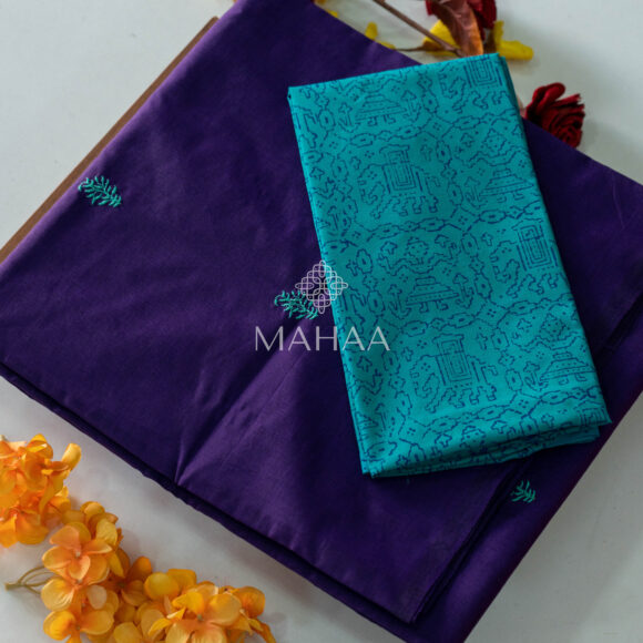 Blended South Cotton Embroidery saree with contrasting blouse