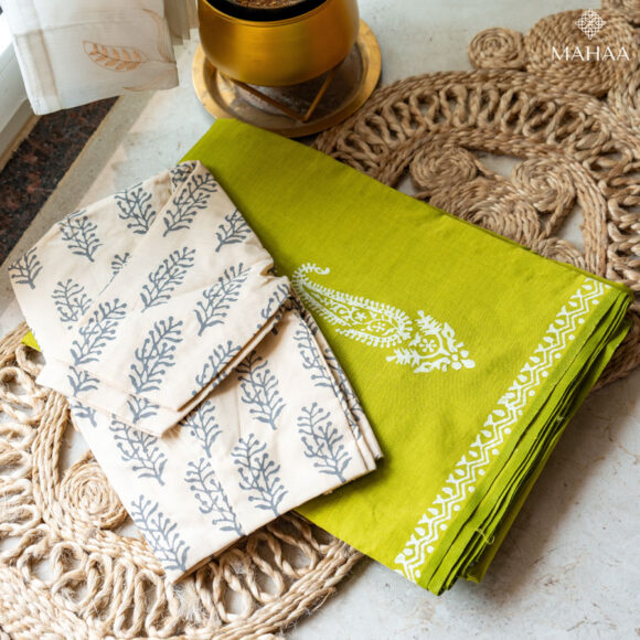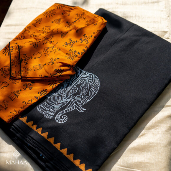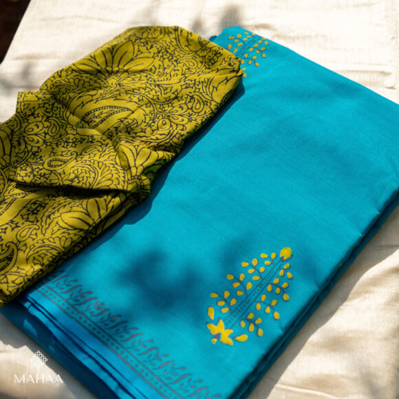 Saree length 6.25 metres with running blouse and readymade blouse. Height 47 inches Easy to wash and maintain. Starch not required. Print won’t fade. You can machine wash as well after two times by hand. Blouse pattern ~ High neck, princess cut and elbow sleeves. With lining. Delivery time :