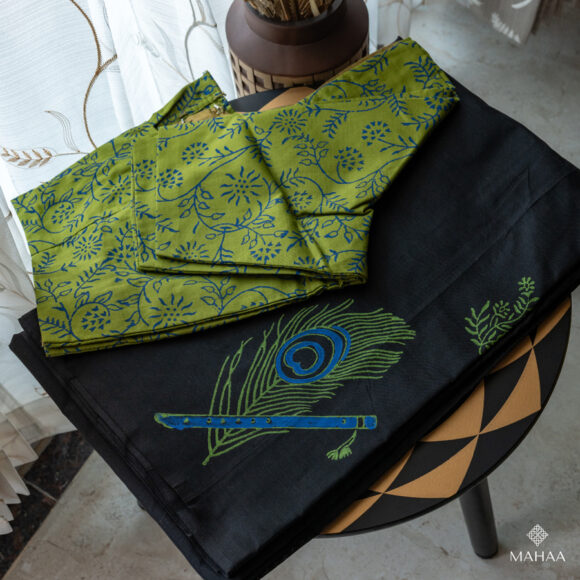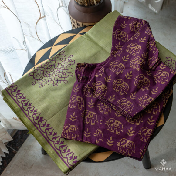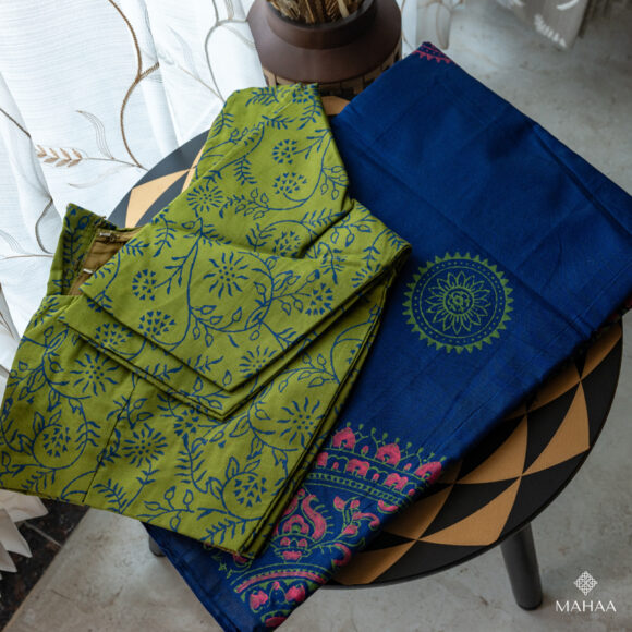 Blended South Cotton Printed sarees with readymade blouse