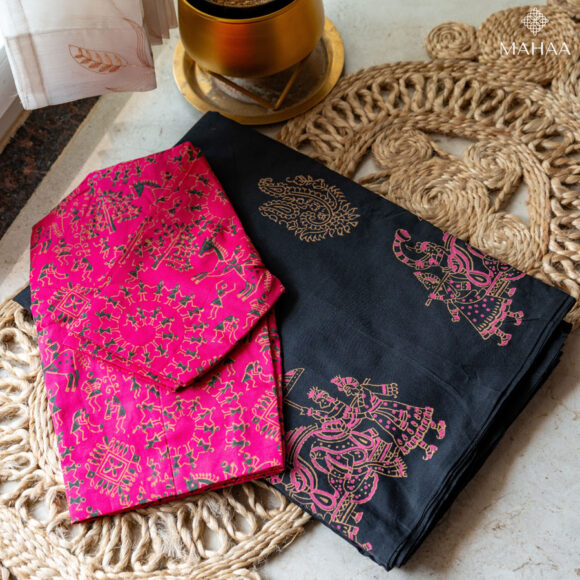 Saree length 6.25 metres with running blouse and readymade blouse. Height 47 inches Easy to wash and maintain. Starch not required. Print won’t fade. You can machine wash as well after two times by hand. Blouse pattern ~ High neck, princess cut and elbow sleeves. With lining. Delivery time :