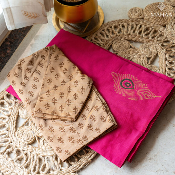 Saree length 6.25 metres with running blouse and readymade blouse. Height 47 inches Easy to wash and maintain. Starch not required. Print won’t fade. You can machine wash as well after two times by hand. Blouse pattern ~High neck, princess cut and elbow sleeves. With lining. Delivery time : We
