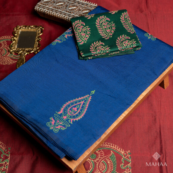 Blended South Cotton Printed sarees with contrasting blouse
